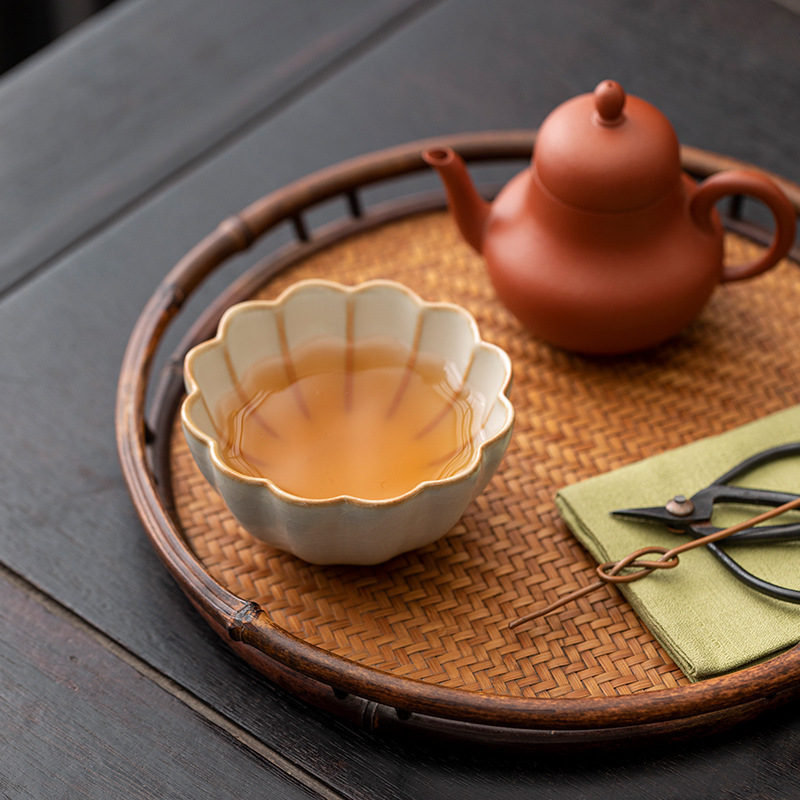 汝窯米黄品茗杯陶磁器日本風工夫茶器創意家庭用開片茶主人杯単杯
