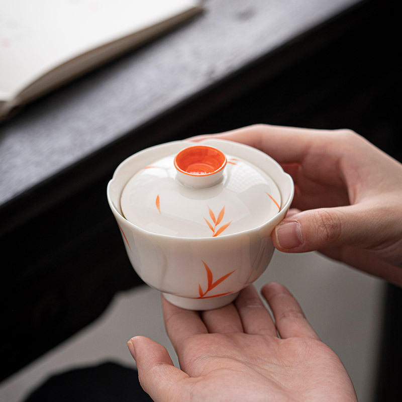 寂風手作り陶磁器ヒョウタン蓋碗工夫茶器単一家庭用応客防止手蓋付き茶碗