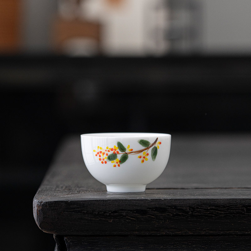 白磁の中国式の金桂の香ばしいお茶の杯のアイデアの家庭用の単一の工夫の陶磁器の主人の杯のお茶の杯のお茶を飲む器