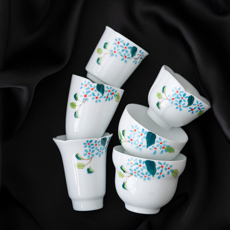 純手描き花茶杯家庭用陶磁器カンフー茶器茶道泡茶杯単杯小茶碗主人杯