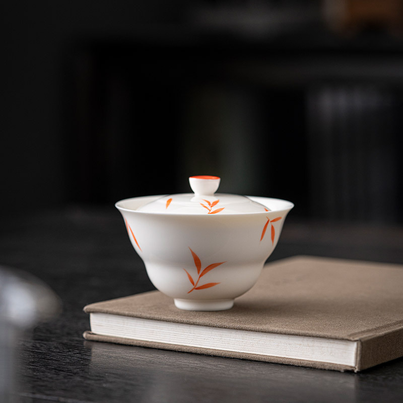 白い磁器の手描きの紅葉のヒョウタンは碗の家庭の客間をかぶせません。
