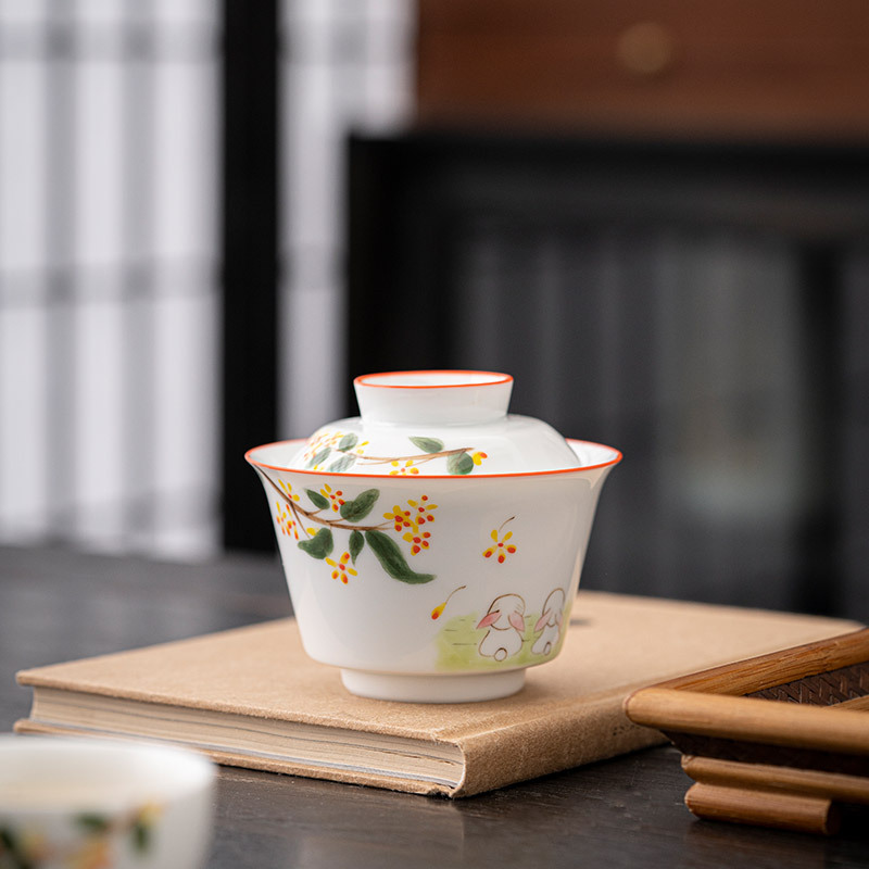 手描きの金桂玉兎蓋の工夫の茶器の単独の家庭用のお茶の碗の湯飲みの高級な手を温めないでお茶の碗を入れます。
