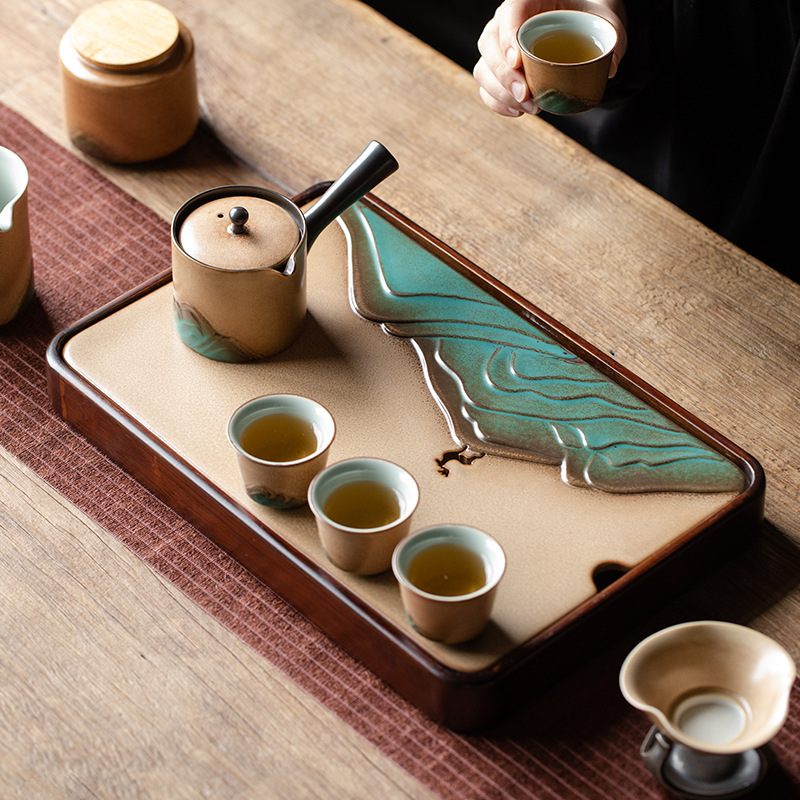 窯変遠山行陶磁器茶盤乾泡台レトロ家庭用高級パレット貯水小茶台乾泡盤茶海