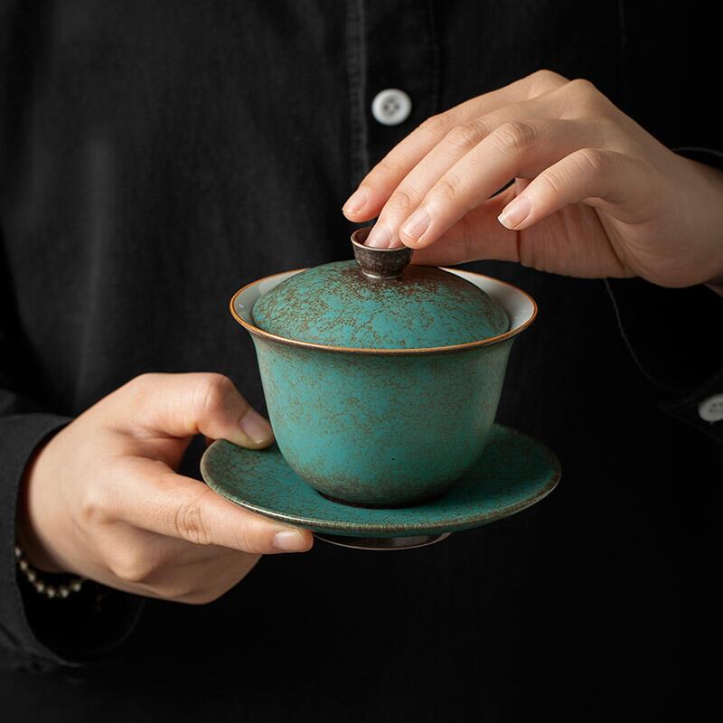 窯変陶磁器蓋茶杯工夫茶具三才碗家庭用陶磁器レトロ敬茶碗単一サイズ