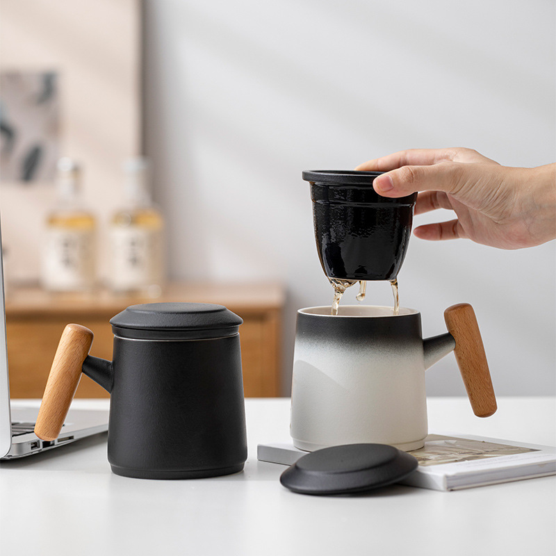 お茶の分離陶磁器のお茶のコップの大容量の男は水のマグカップを飲みます。