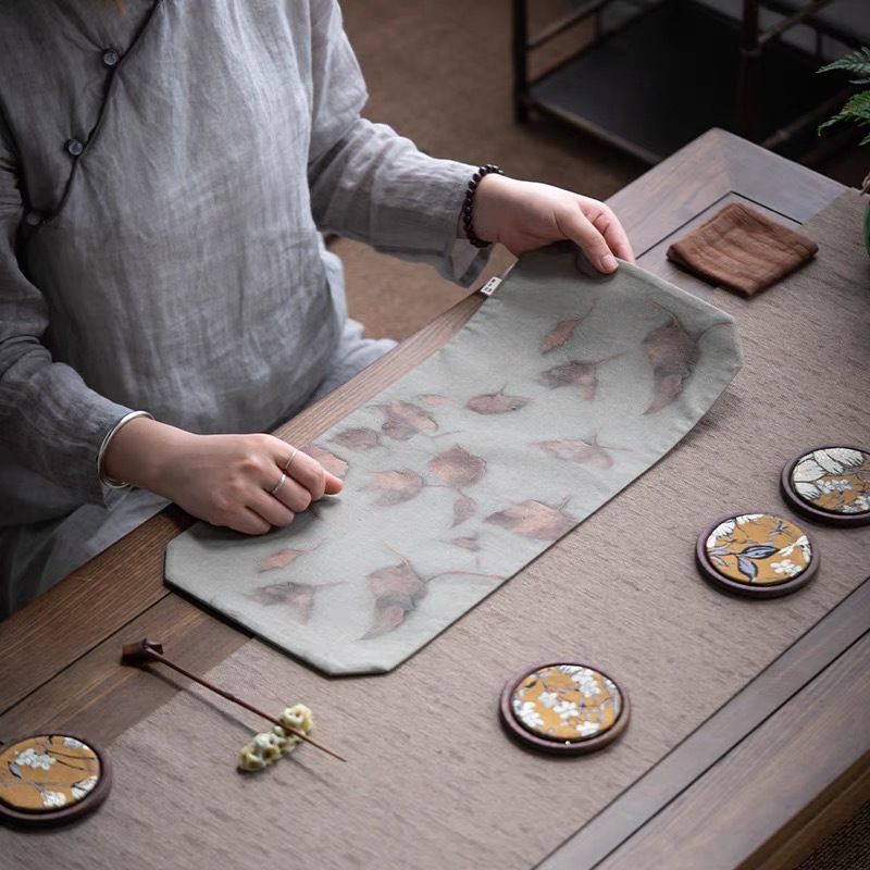 レトロ禅意乾泡席中国式シルク麻唐彩紋茶台手作り茶テーブル旗吸水マット茶器部品マット