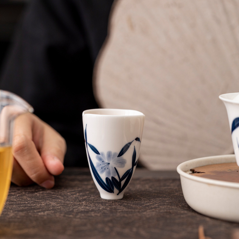 墨青百合の主人の杯の杯の杯の手描きの白磁の接客は工夫のお茶のプーアルの1杯のお茶のお茶の杯のお茶の杯のお茶の杯の香りの杯を聞きます