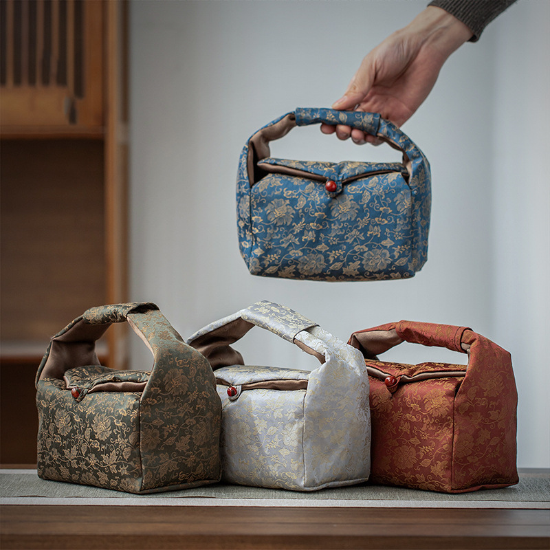 枝蓮織錦茶布バッグ携帯旅行茶器旅行収納バッグ新中国式茶器手提げ帯ハンドバッグ