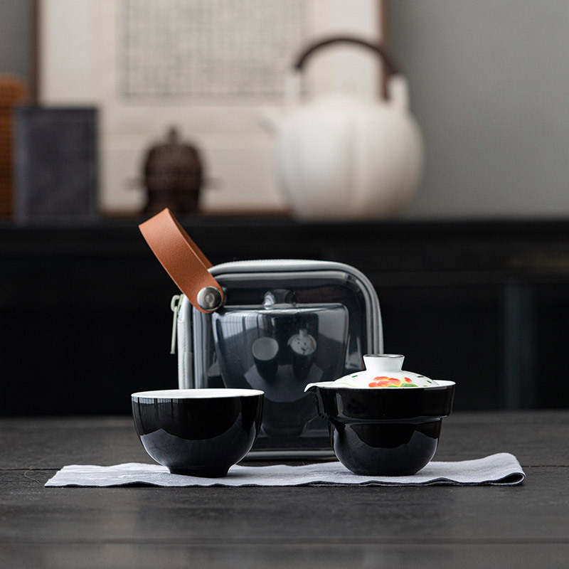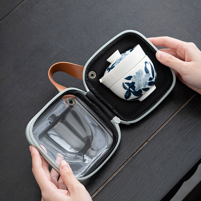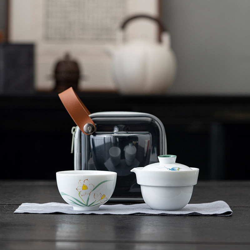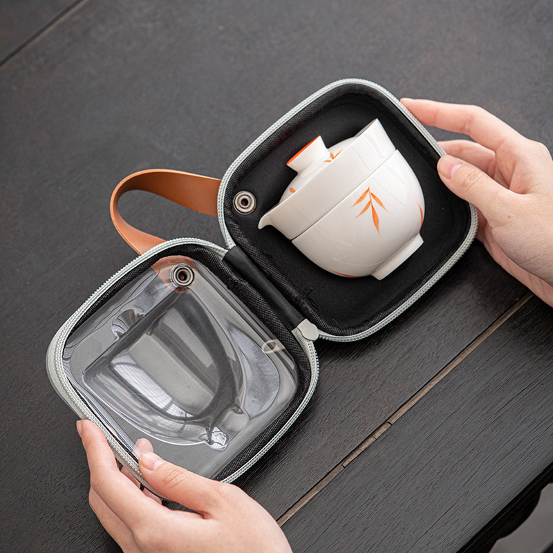手描き蘭馥携帯旅行茶器一本二杯一人屋外キャンプ旅行泡茶快客杯セット