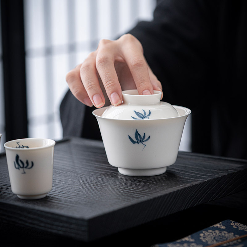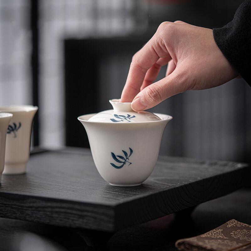 手描きの蘭の三才は碗のお茶の杯をかぶせます。