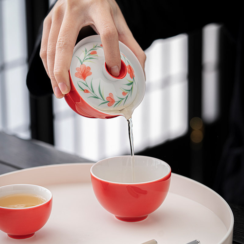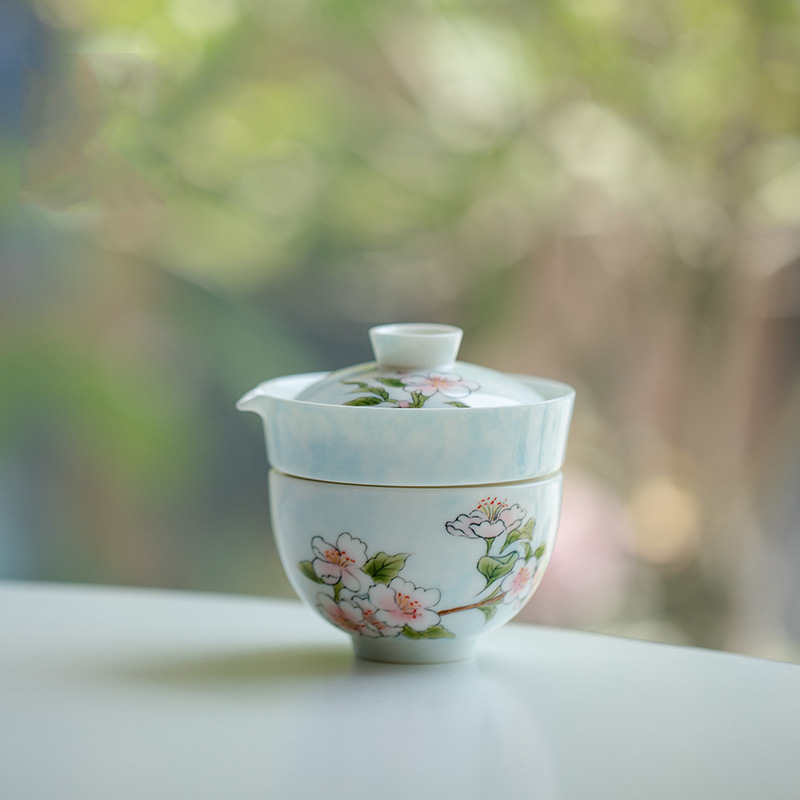 手描きの花は錦のようです。旅行茶器セットは一人で屋外でキャンプします。