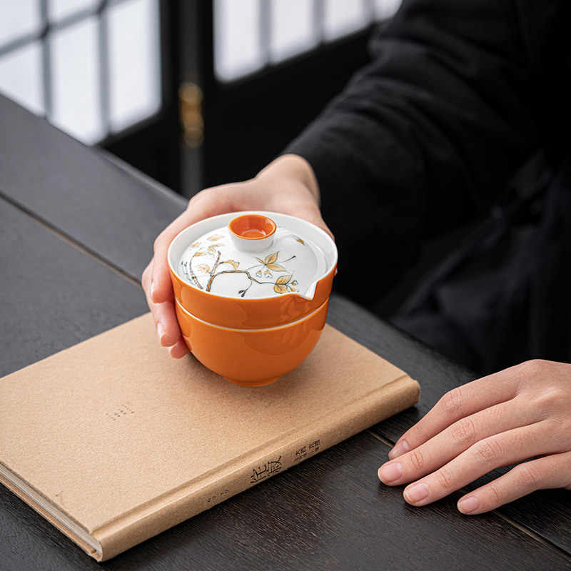 手描き柿旅行茶器セット屋外キャンプ携帯陶磁器快客杯携帯一本一杯