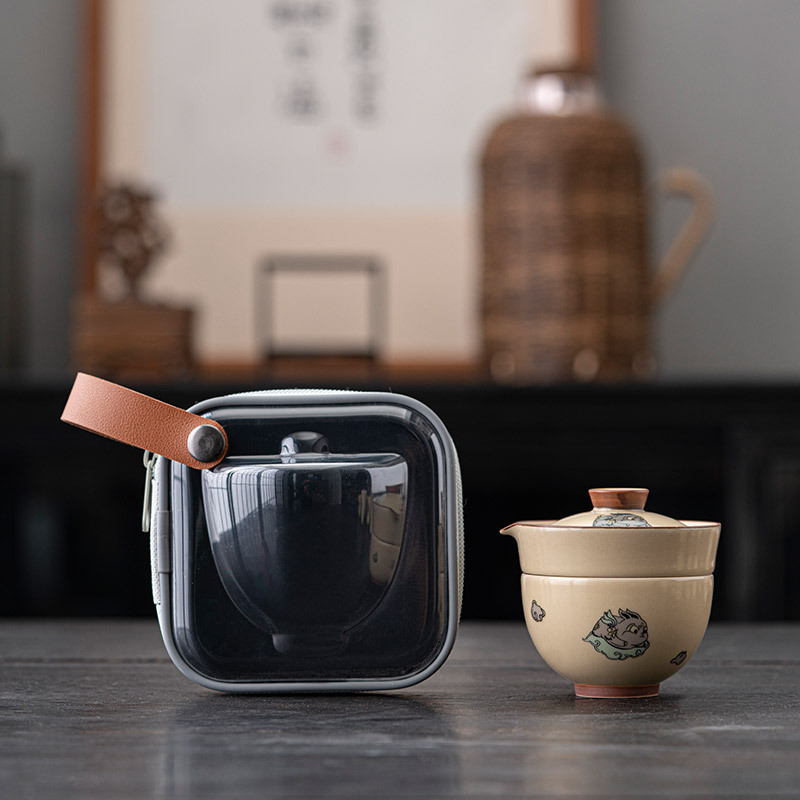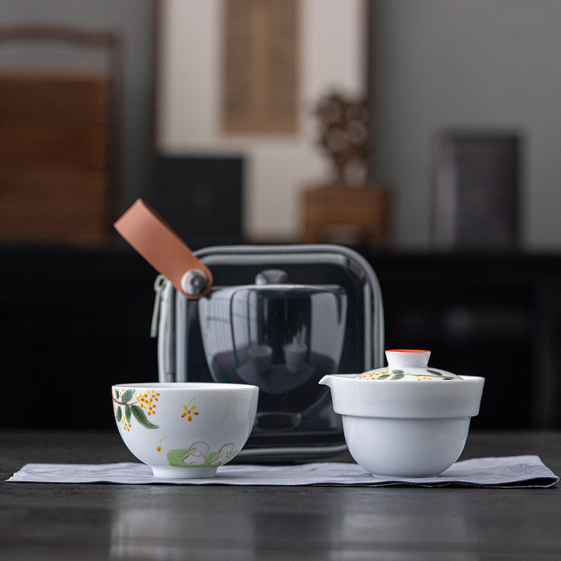 手描き桂花玉兎旅行茶器セット屋外携帯陶磁器一本二杯快客杯工夫茶器