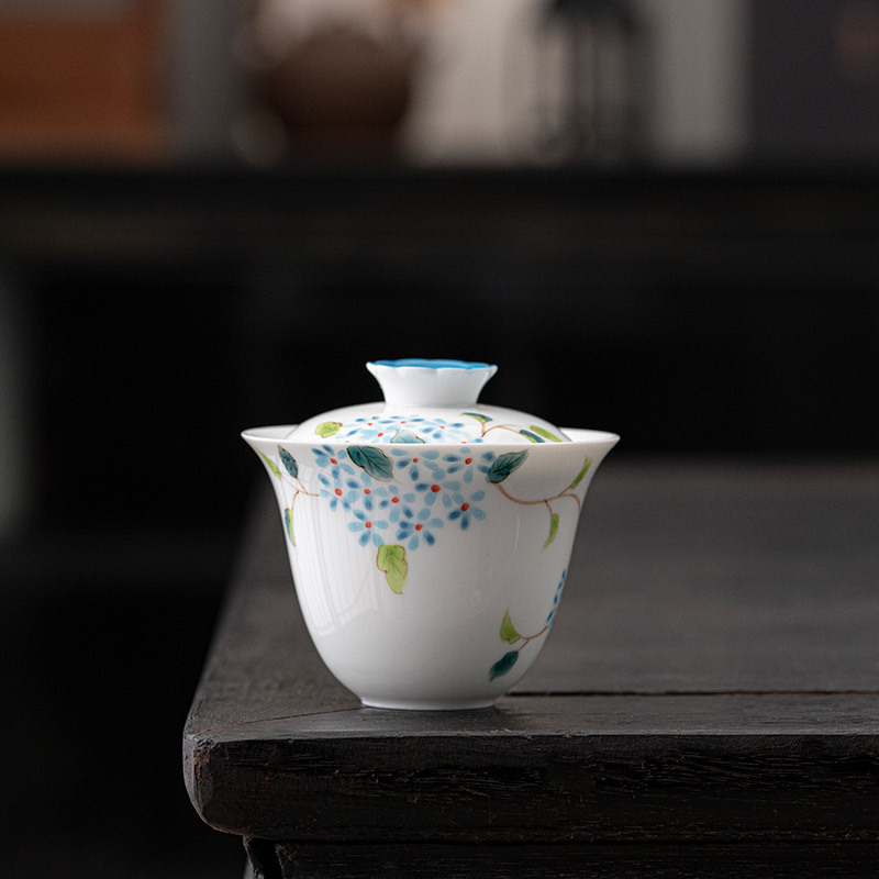 手描きの花の三才は碗の工夫の茶器をかぶせます。