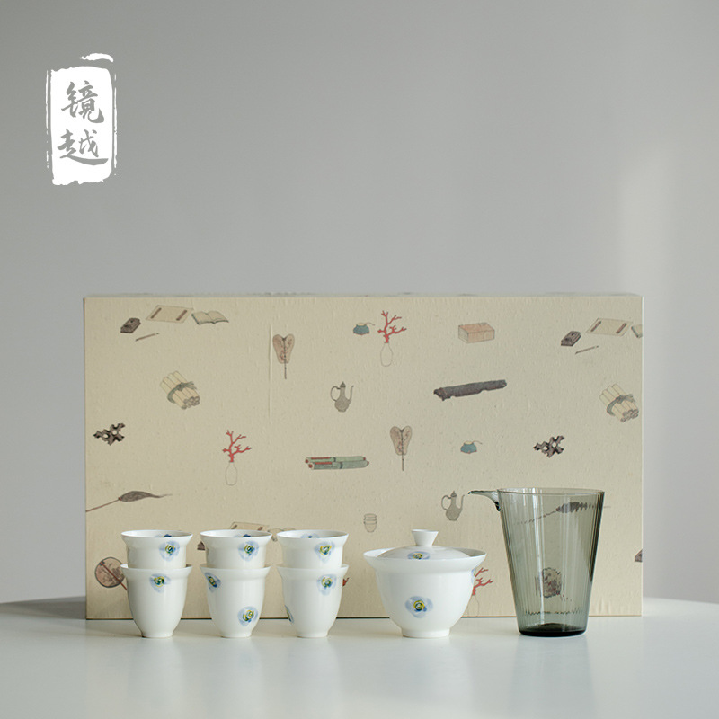 清雅な手描きの茶器セット家庭用オフィスの陶磁器のパーマ防止の工夫はお茶の杯の壺の高級な贈り物の箱に入ります。