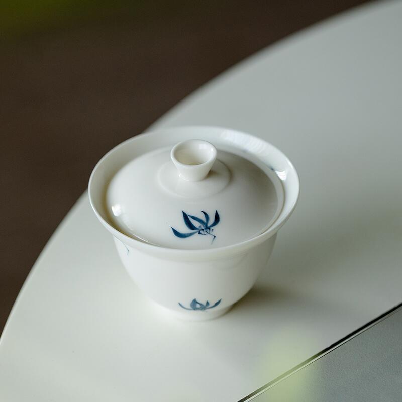 白い磁器の手描きの幽蘭の香りは碗のお茶の杯の家庭用の陶磁器の単一のお茶の碗の工夫のお茶のセットをかぶせます。