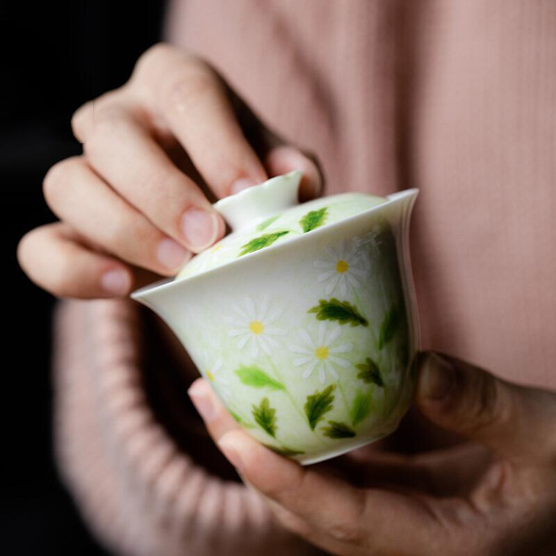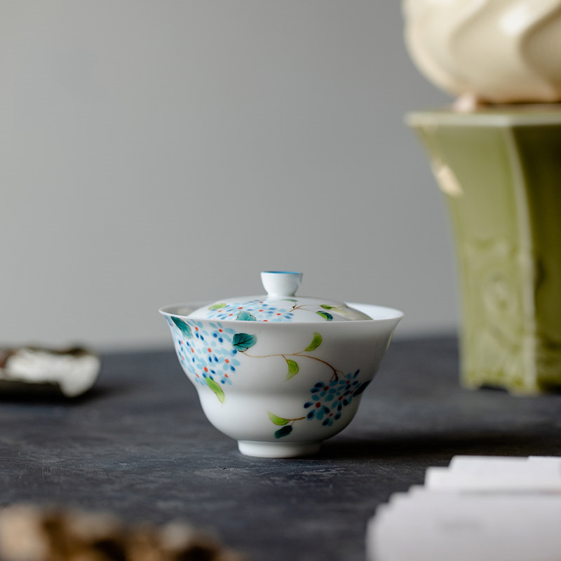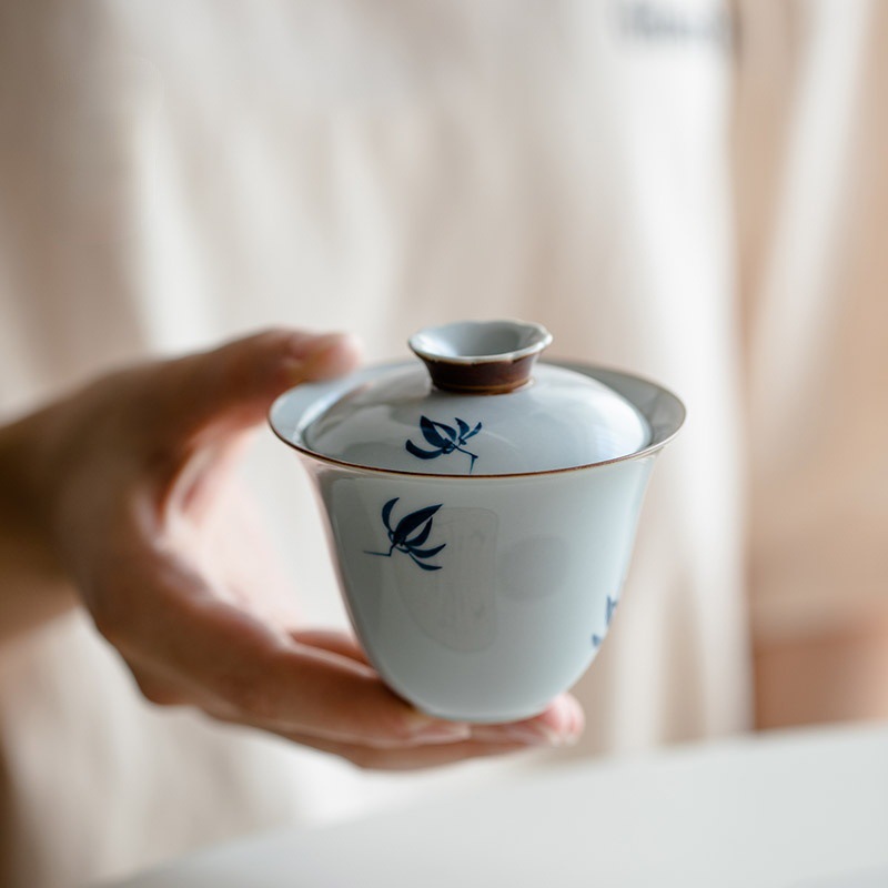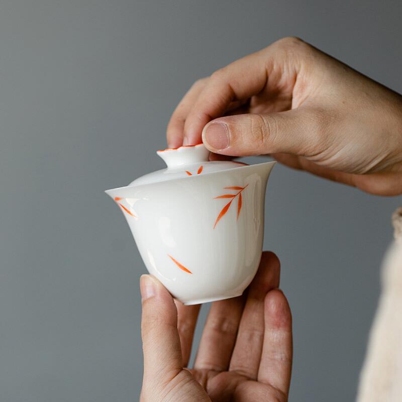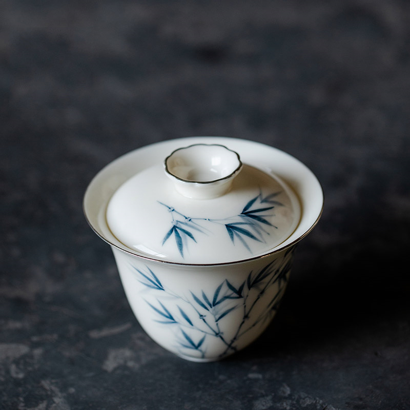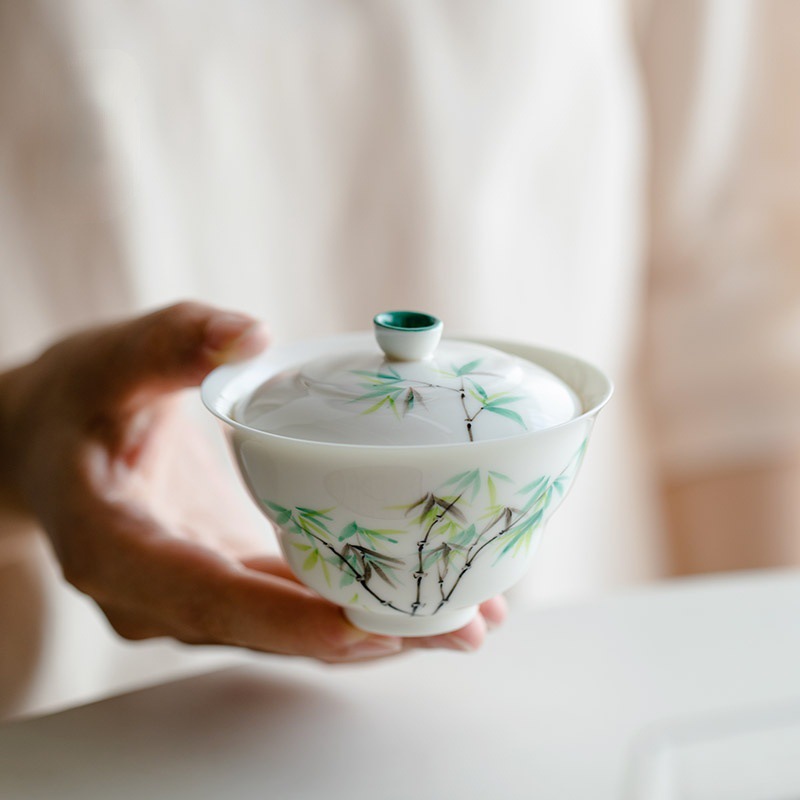 手描き翠竹白磁蓋碗茶杯単一の手描き茶碗はお茶を入れます。