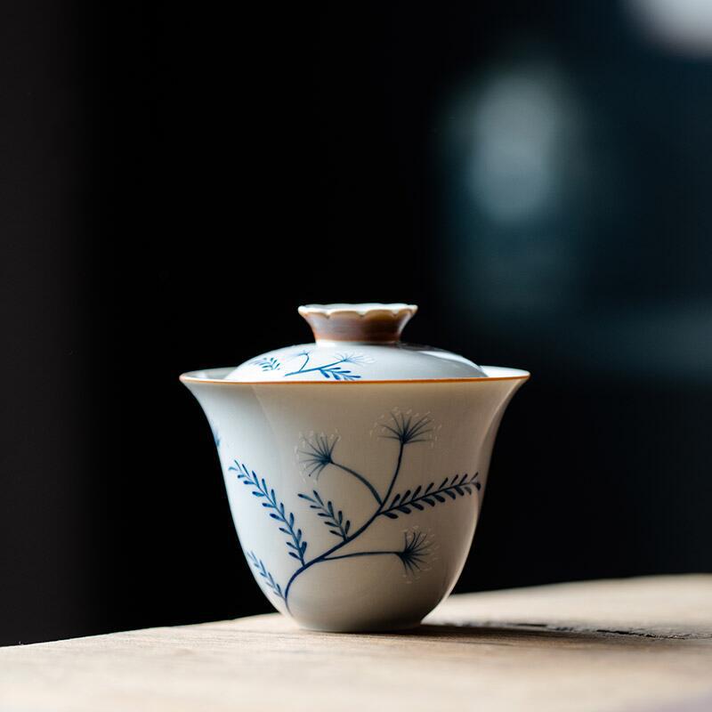 墨青手描きタンポポ蓋碗茶杯高級単一陶磁器の工夫茶碗蓋付き家庭用のお茶碗は熱を防ぎます。