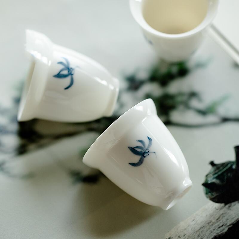 手描き幽兰ティーカップシングルティーカップマスター纯粋な手作りセラミック茶碗工夫茶道具品茗シングルトランペット