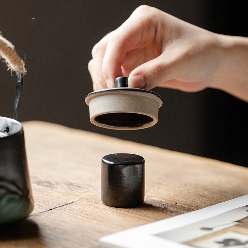 窯変黒陶蓋セットレトロ日本式創意手作り家庭用茶器部品茶杯托茶道小置物