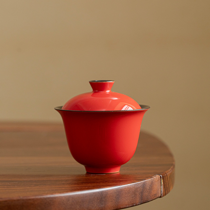 中国の赤い蓋付きボウルティーカップ中国の家庭用シングルハイエンド大型セラミックカンフーティーセット蓋付きティーボウル