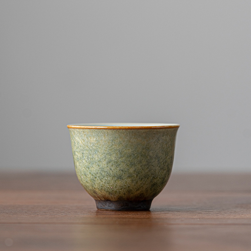 青緑窯変茶杯品茗杯陶磁器工夫茶具家庭用小茶碗防熱手復古シングルカップ主人杯