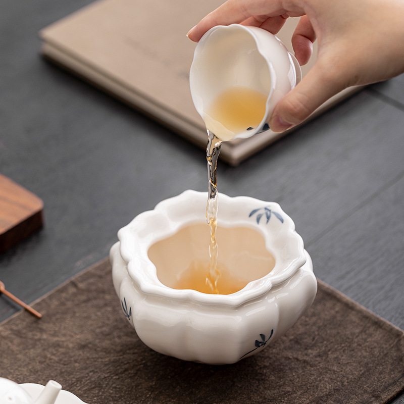 墨藍百合蓋碗陶磁器の工夫茶器の一つの小さいサイズの蓋を持っています。