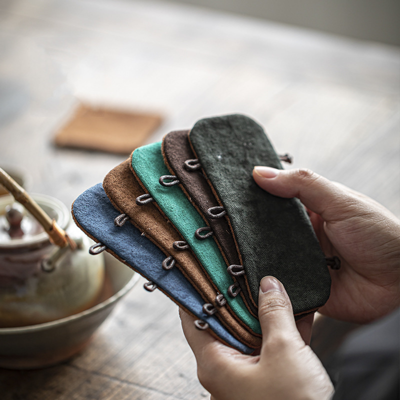 ポットはパーマ防止の布を復古の梁壺にセットして、綿麻の復古のティーポットの取っ手の布の束を断熱して茶器の部品を敷きます。
