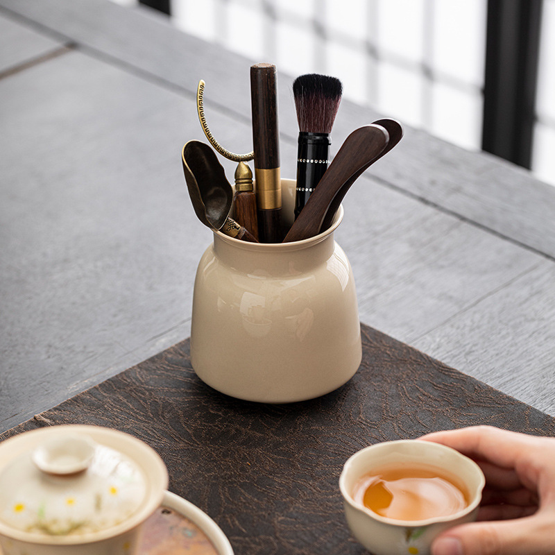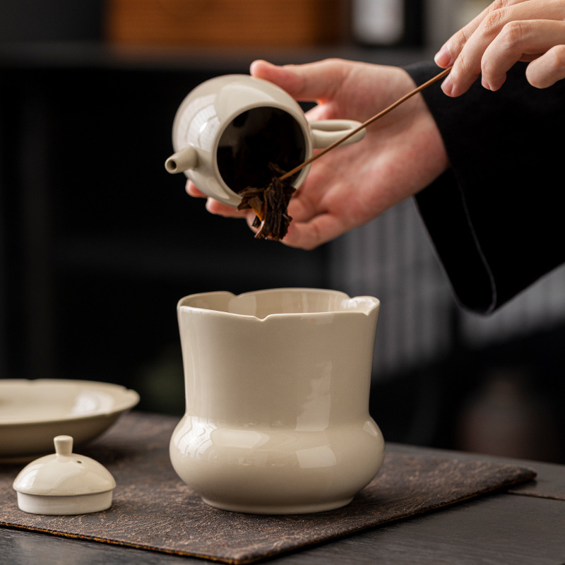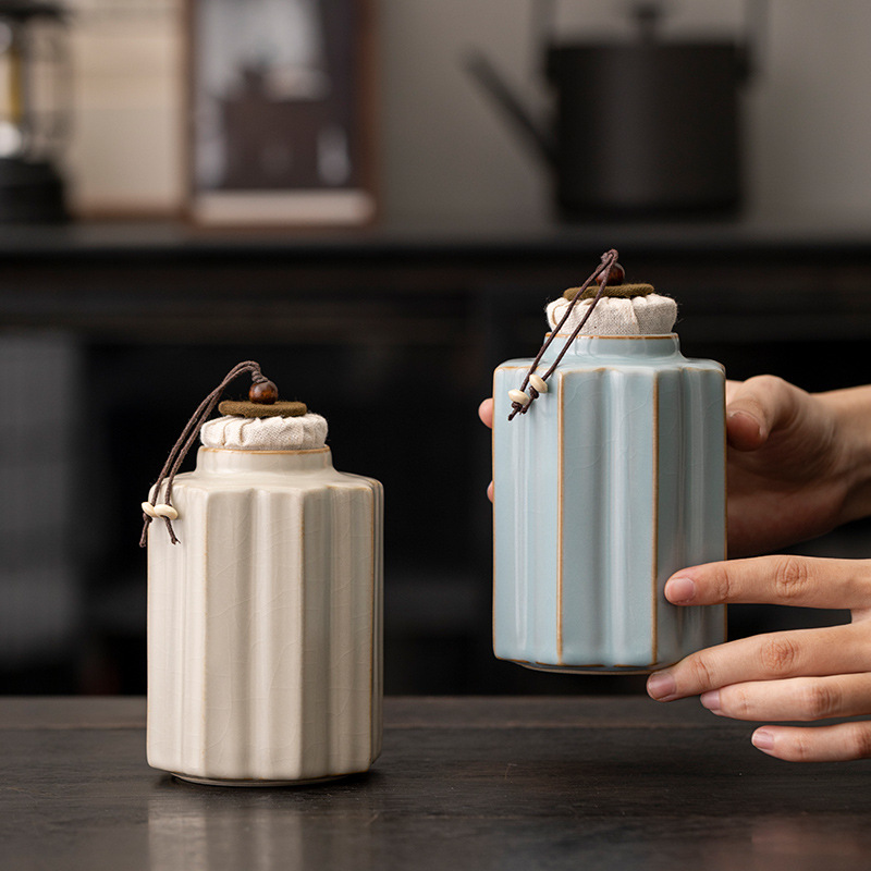 米黄汝窯茶葉缶陶磁器日本式創意家庭用手作りトランペットプーアル密封缶携帯貯蔵タンク