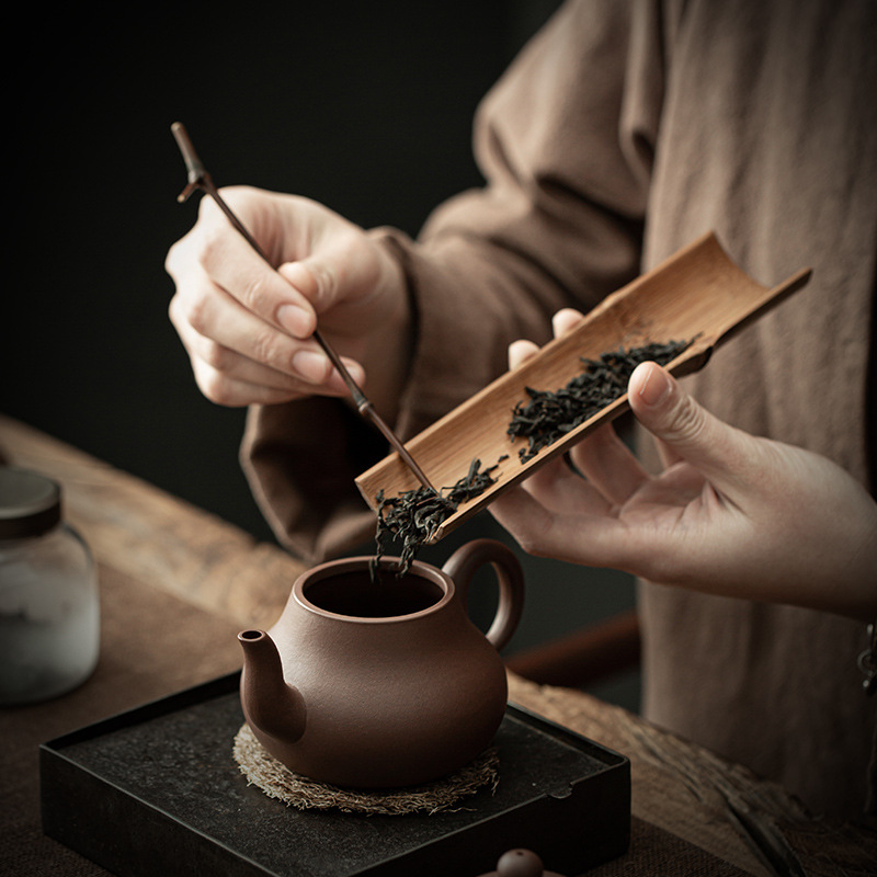 日本茶は三点セットの工夫茶道具竹茶荷茶は天然の純粋な手作り茶巾禅意茶道の部品を挟んでいます。