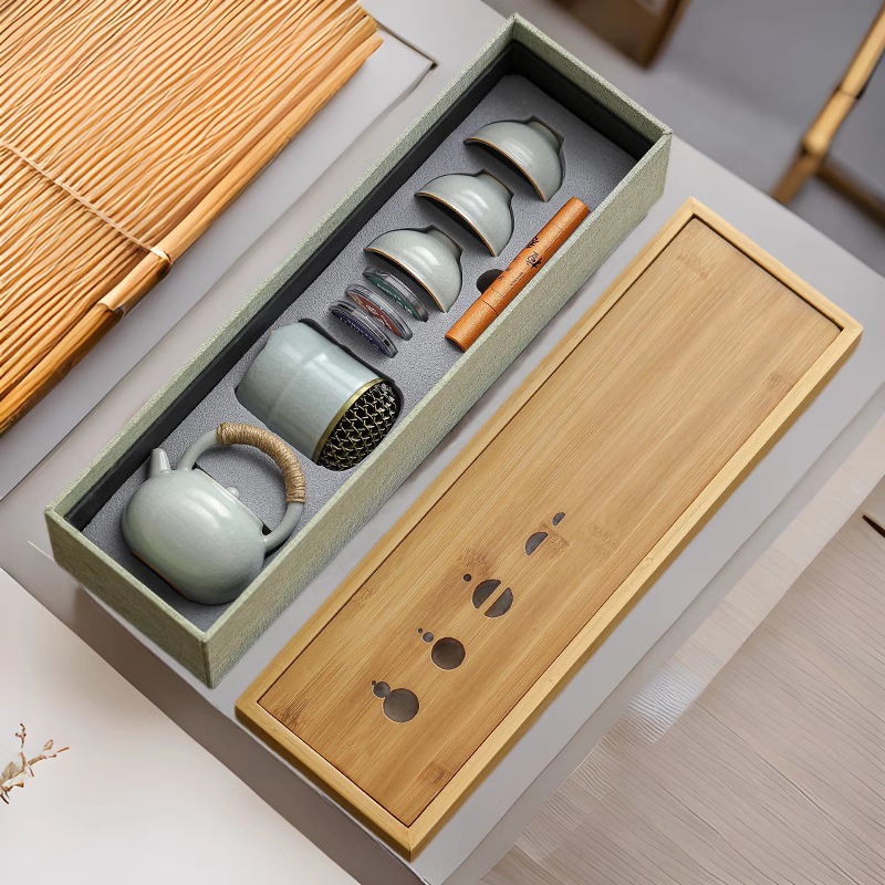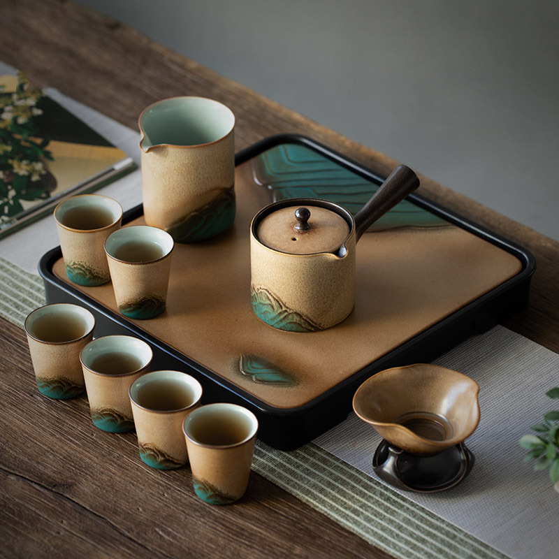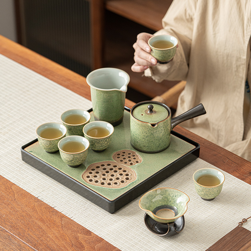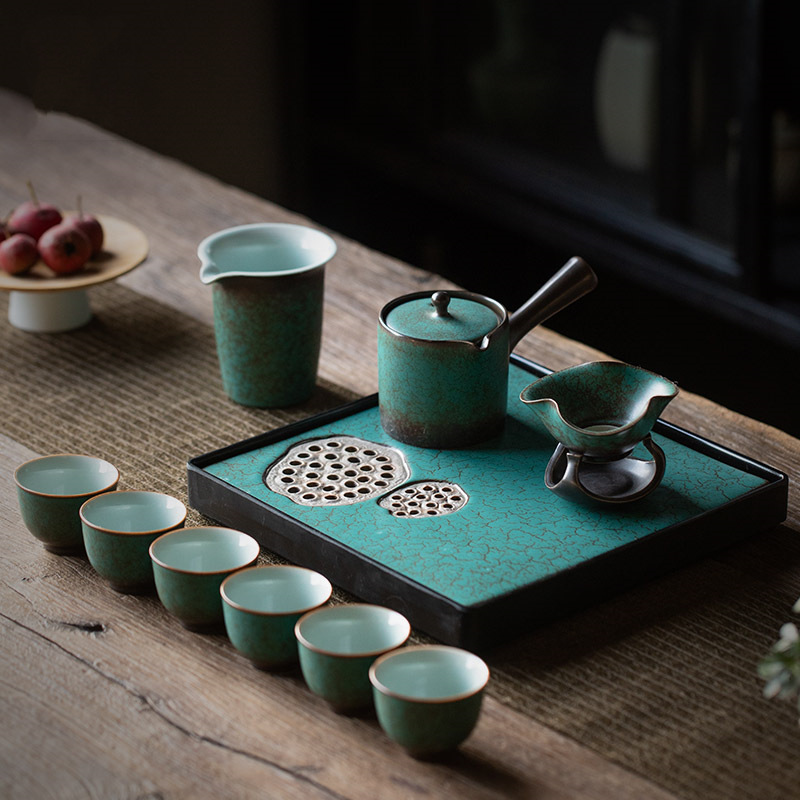 窯変青緑工夫茶器セットレトロ陶磁器オフィス家庭用リビングルームの乾燥茶盤セット