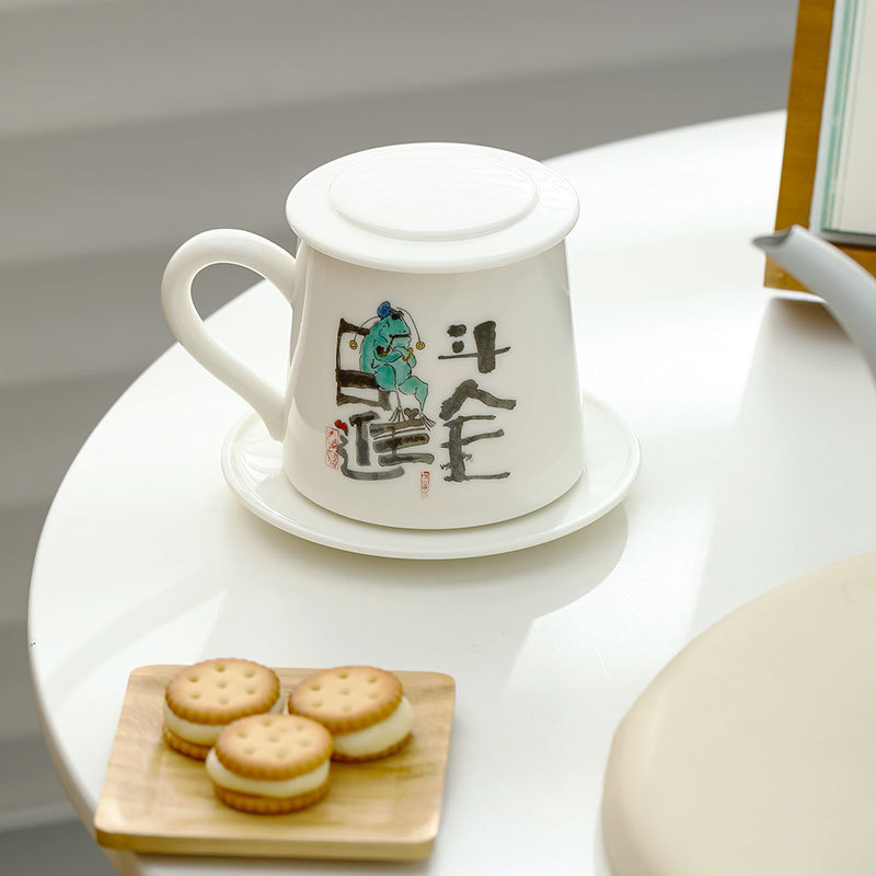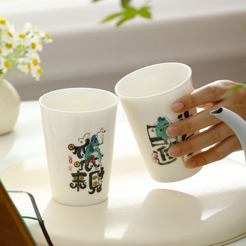 白磁の羊の脂の玉の主人の杯の工夫の茶器のアイデアは絵の家庭の陶磁器のコップの個人の杯のカップのコーラの杯を貼ります。