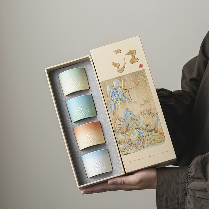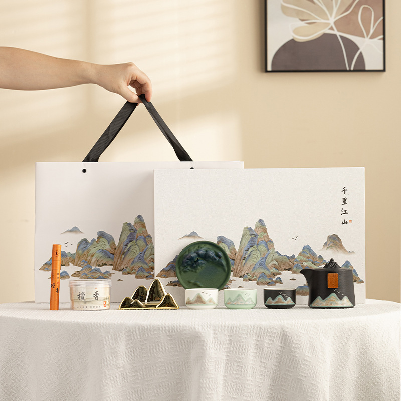 四季江山ティーカップセット会議会社年次総会ビジネスお土産のアイデアがすぐにお客様にプレゼントされます
