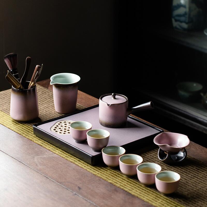 漫粉窯変茶器セット家庭用リビングオフィス高級工夫茶陶磁器側ティーポット礼箱