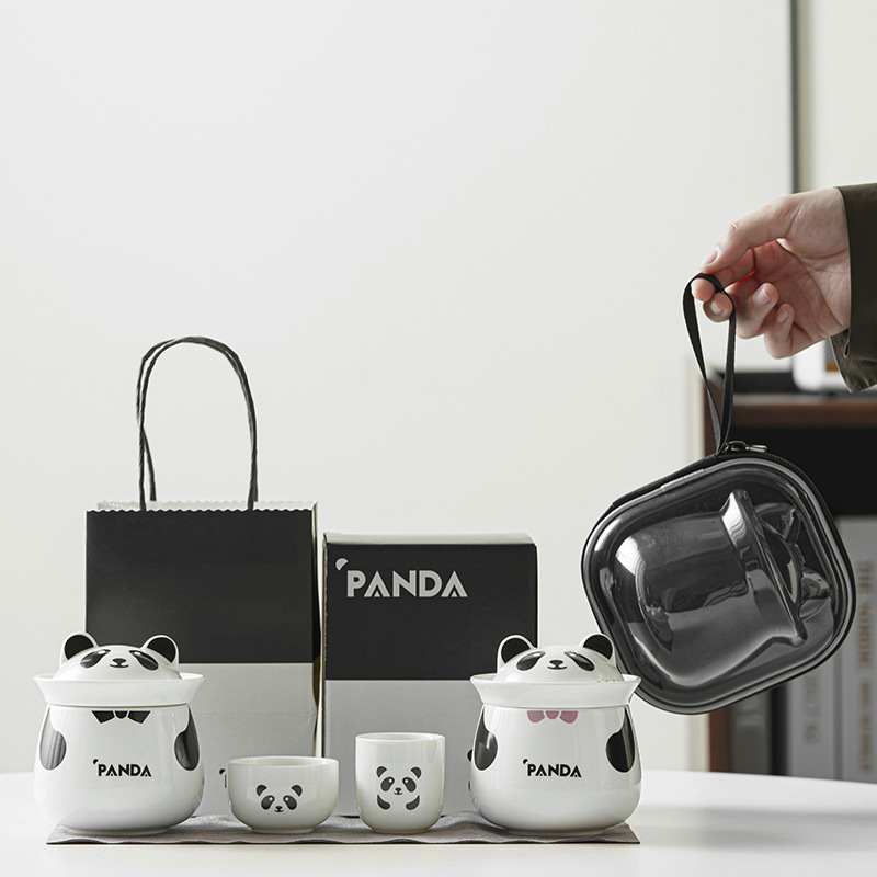パンダ快客杯一壺二杯屋外旅行陶磁器茶器セット年会会社のお土産マーク