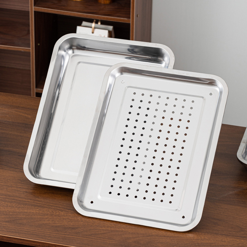 漏れ油業務用フィルターステンレス製茶盆油盆餃子盆水切り二層盆盆漏れ長方形トレイ