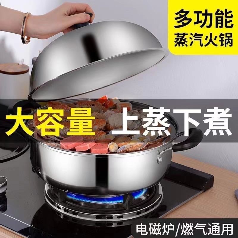 304 ステンレス鋼二層厚みのある蒸し器商業シーフードスチームポットサウナポット蒸し魚ポット電磁調理器ポット
