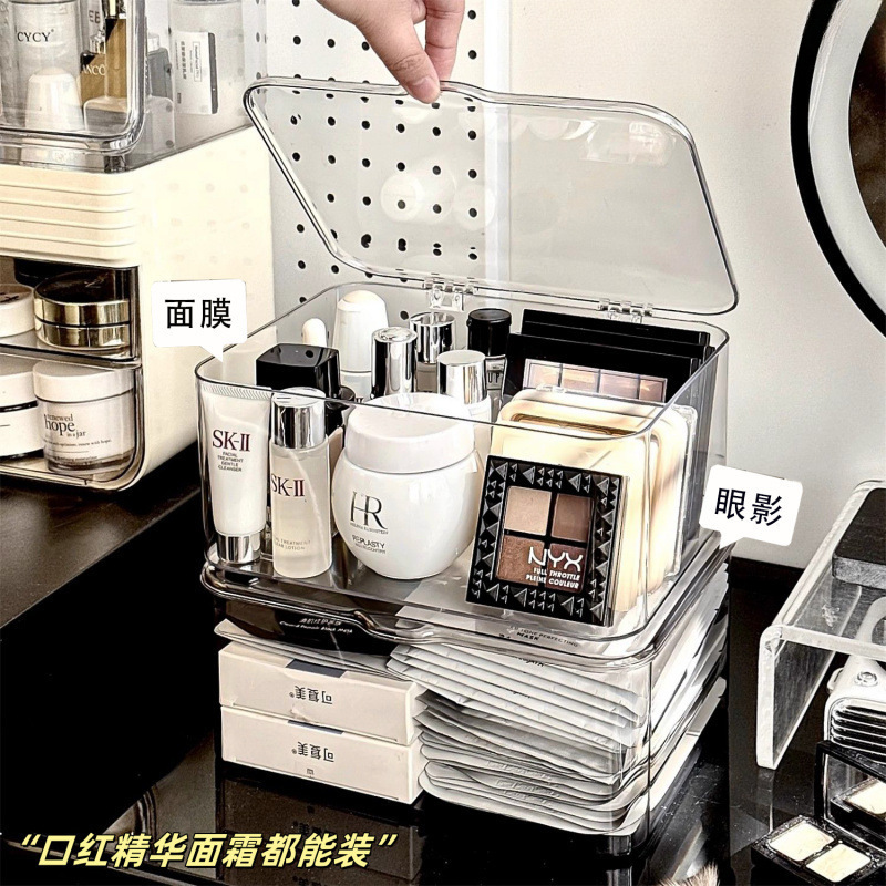 化粧品収納ボックス、大容量のスキンケア製品、フェイシャルマスク収納バスケット、ドレッシングテーブルフリップトップ収納ボックス、雑貨透明ボックス