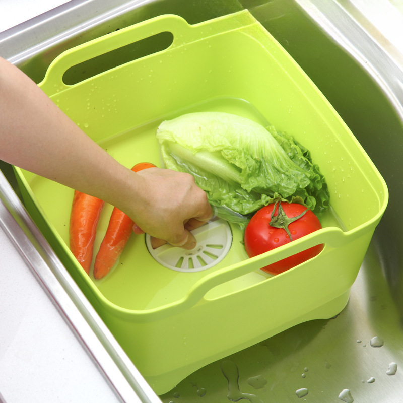 家庭用シンプルでポータブルな野菜洗いバスケットのフルセット、蓋付きプラスチック野菜洗いキッチンバスケット、厚みのあるモバイルシンク野菜バスケット