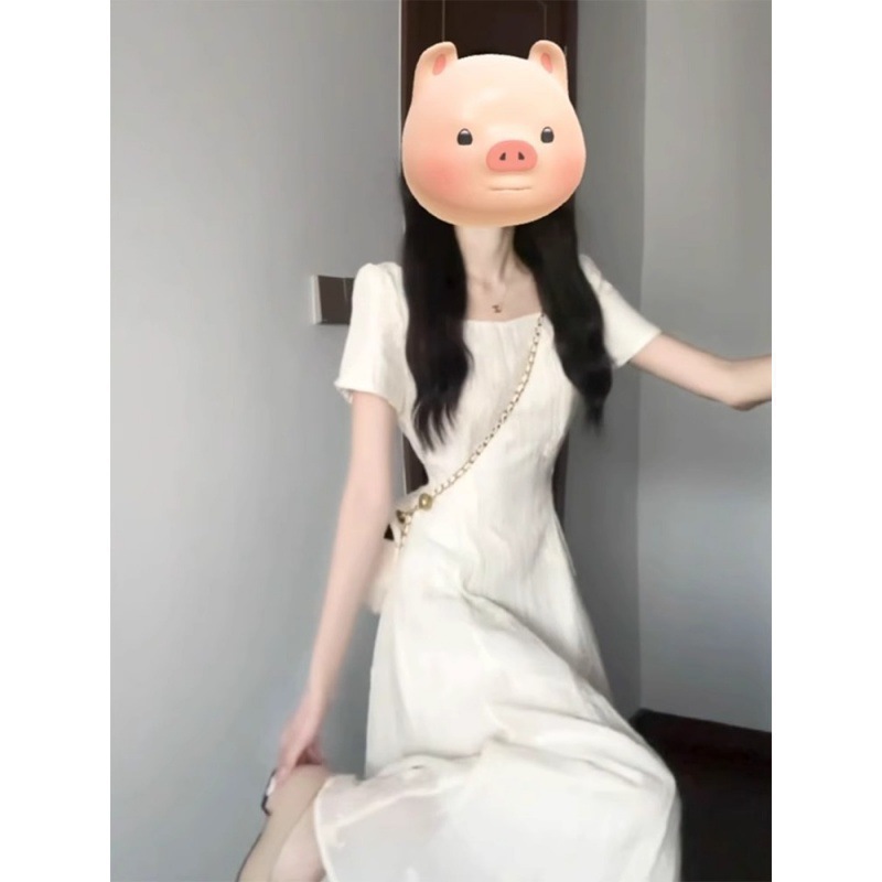 夏の新しい美しいフレンチフェアリードレスミドル丈の気質初恋白月光ドレスはスリムでエレガントです