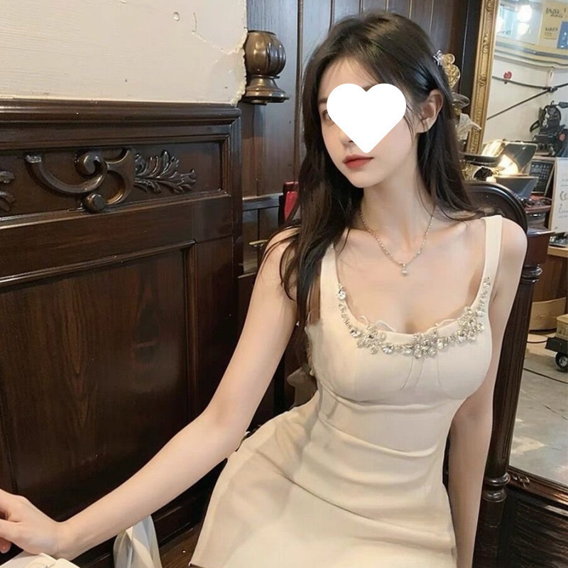 高級感のある新しい気質のサスペンダードレス Wan Wan 甘い純粋な欲望スタイルのフレンチサスペンダースカート ウエストニッチ 送料無料..