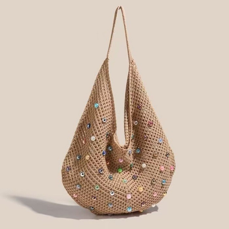 女性のための織バッグ 2025 新しい韓国スタイルのショルダートートバッグ怠惰なスタイルのニット中空花ビーチバッグ