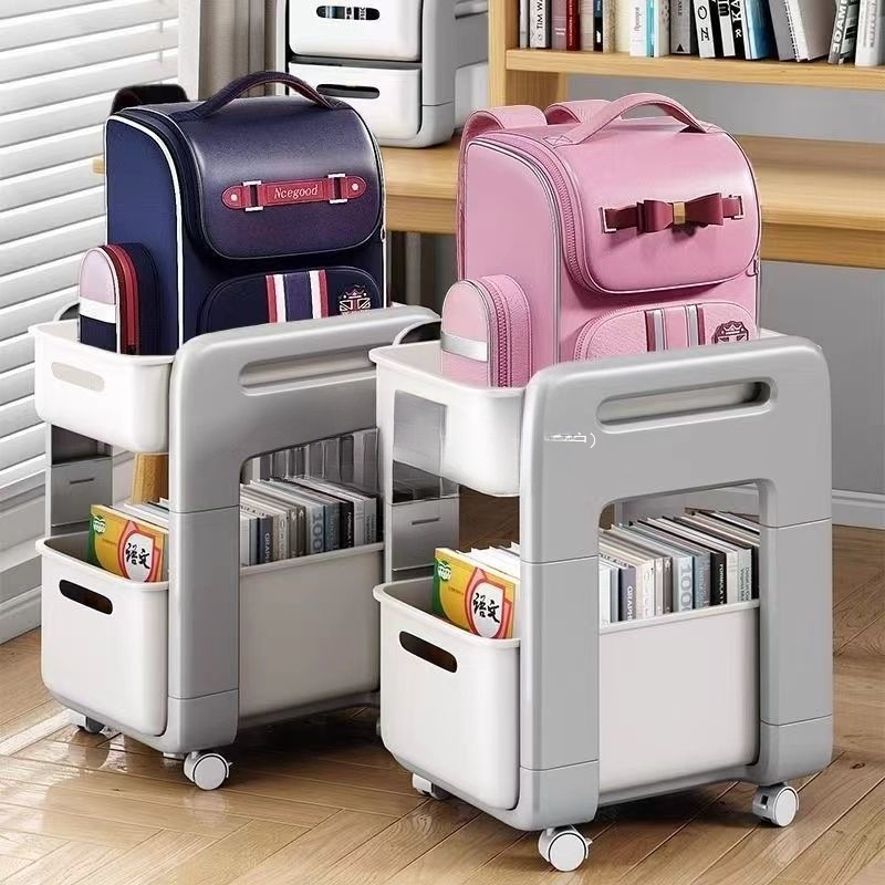サイレントスクールバッグ収納ラック取り外し可能なトロリーブック収納ラックホームスクールバッグテーブル下ホイールキャビネット