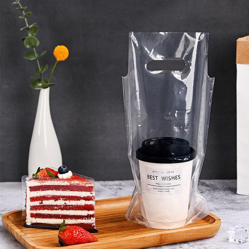 口径ミルクティーカップ包装袋飲料レモンティーコーヒー透明リング肥厚テイクアウトバッグシングルおよびダブルカップ