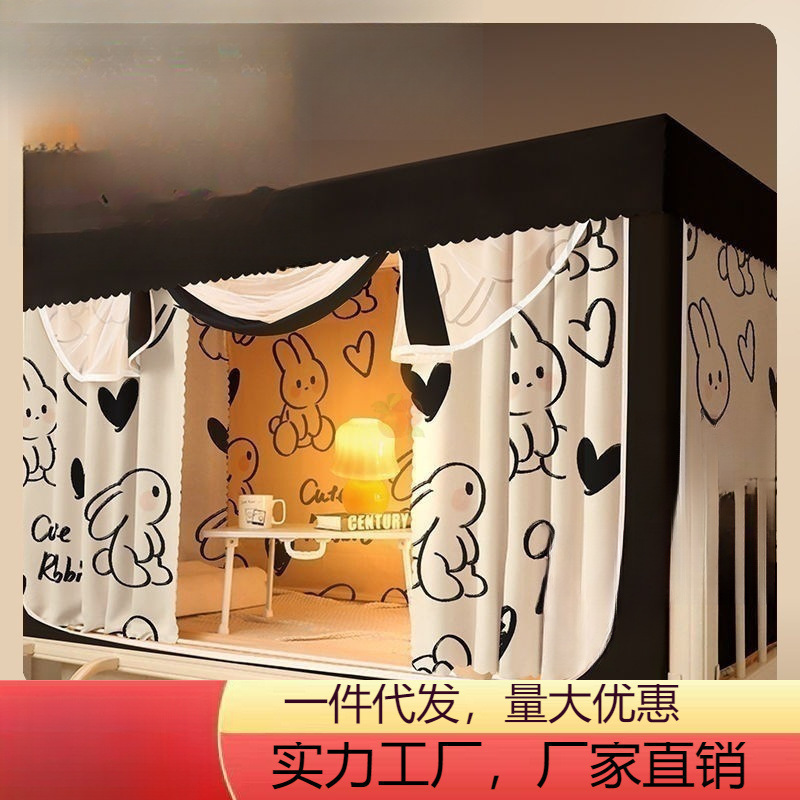 ベッドカーテン、遮光蚊帳、一体型寮二段ベッド、ブラケット付き上下二段ベッドカーテン、学生用ハイ&ローベッドカーテン