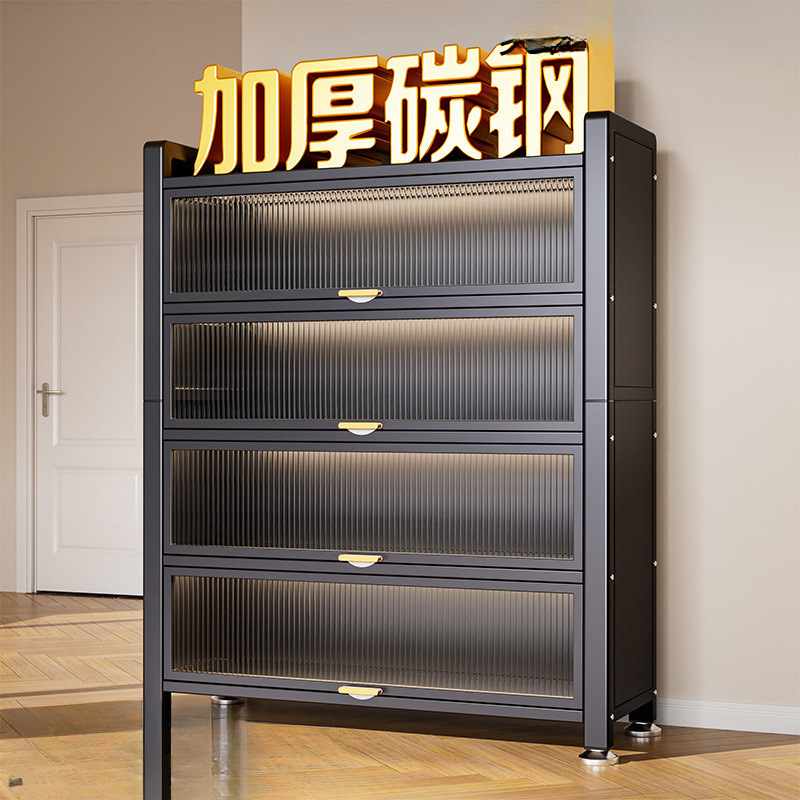スチール製下駄箱床置き多層防塵靴ラック玄関ドア新玄関大容量収納キャビネット