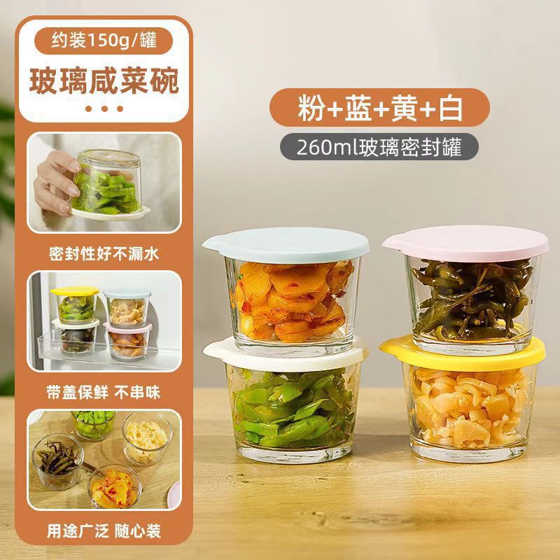 テイクアウトピクルスボックスガラスクリッパーボウル密封瓶ポータブル2025新しいピクルスボウル冷蔵庫蓋付き