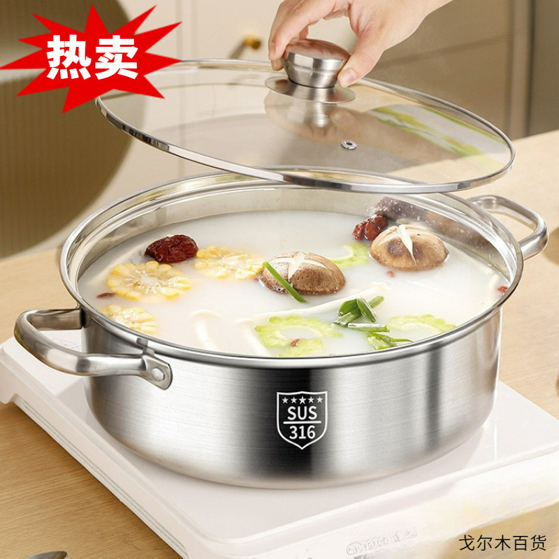厚みのある食品グレードのステンレス鋼の鍋、短いスープポット、家庭用電磁調理器、鍋、送料無料