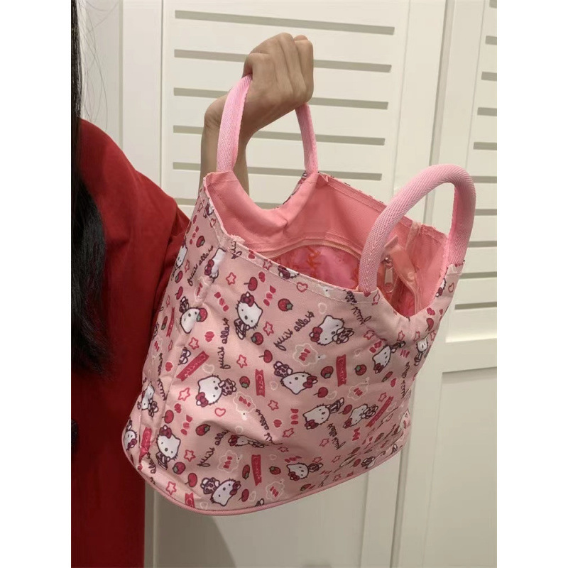 かわいい漫画のハローキティのフルスクリーンハンドバッグ、学生クラスバッグ、外出用ハンドバッグ、通勤用