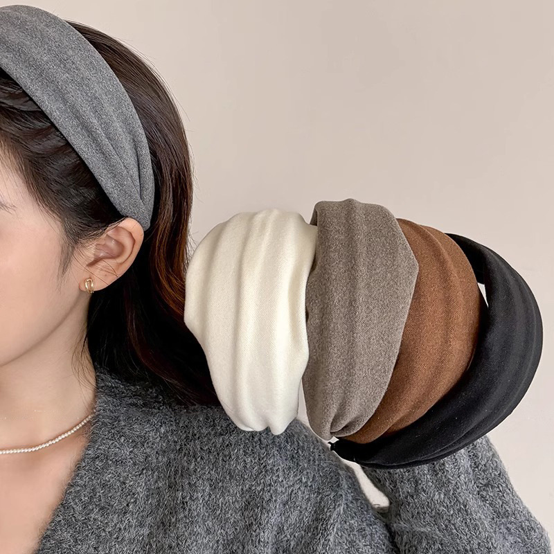 カレー色の高頭トップのカチューシャはシンプルで、幅が広い楕円の女性の髪のカチューシャは秋冬の高級感があります。